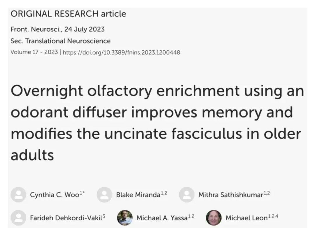 研究团队将 60 至 85 岁的健康老年人随机分为嗅觉增强组和对照组。嗅觉增强组的参与者每晚使用气味扩散器接触七种不同的气味精油,包括玫瑰、橙子、桉树、柠檬、薄荷、迷迭香和薰衣草,持续 2 小时;而对照组则接触极少量的气味。